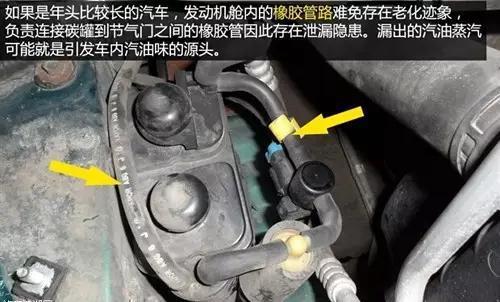 车龄较长的车,发动机舱内的橡胶件就易老化。碳罐到节气门之间是用橡胶管路连接,只要老化就可能泄露至发动舱,需要及时更换橡胶管。